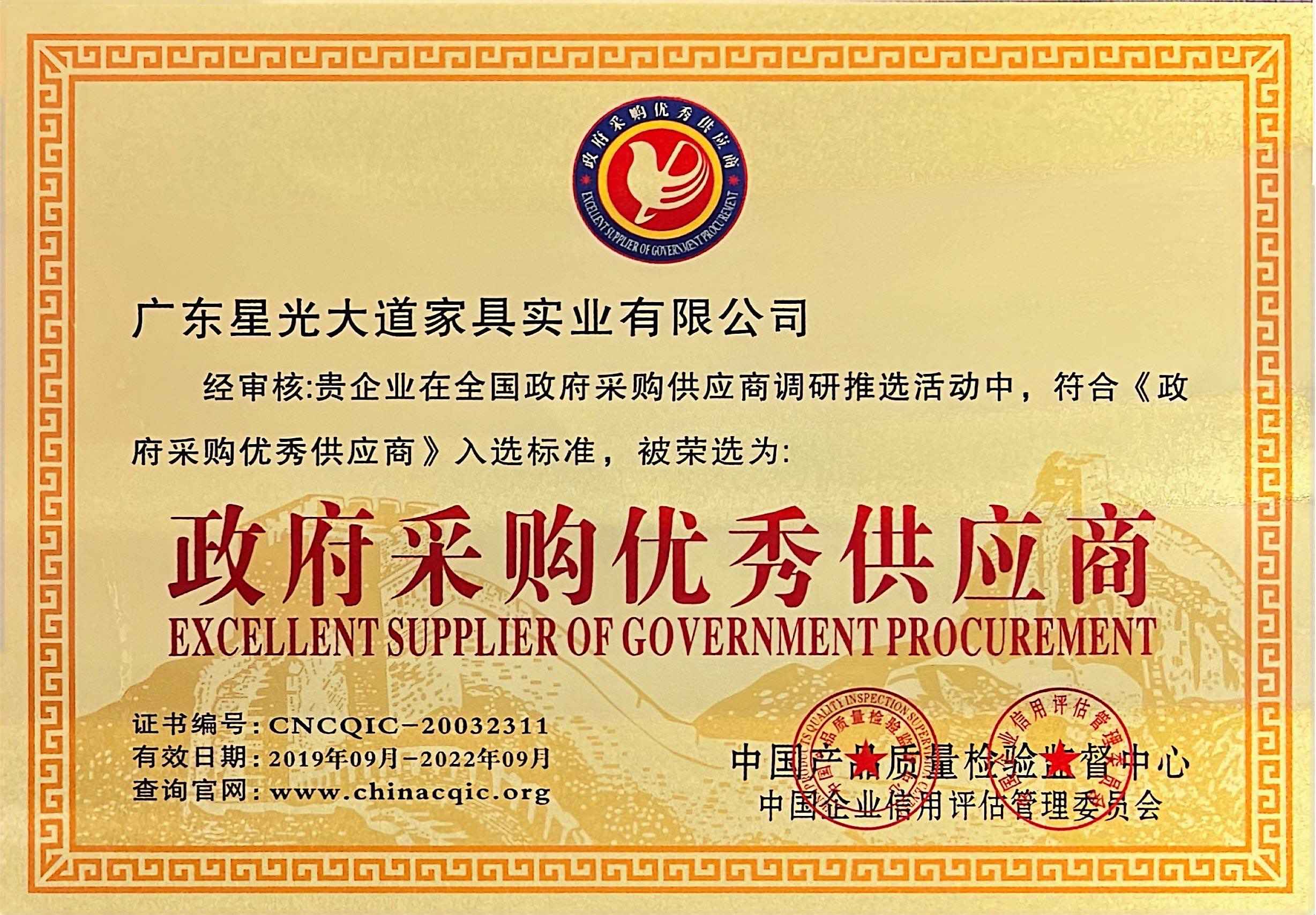 From 2019 to 2020, it was awarded the title of "Outstanding Supplier for Government Procurement", and from 2015 to 2019, it was consecutively recognized as a "Guangdong Province Contract-abiding and Creditworthy Enterprise" for five years.