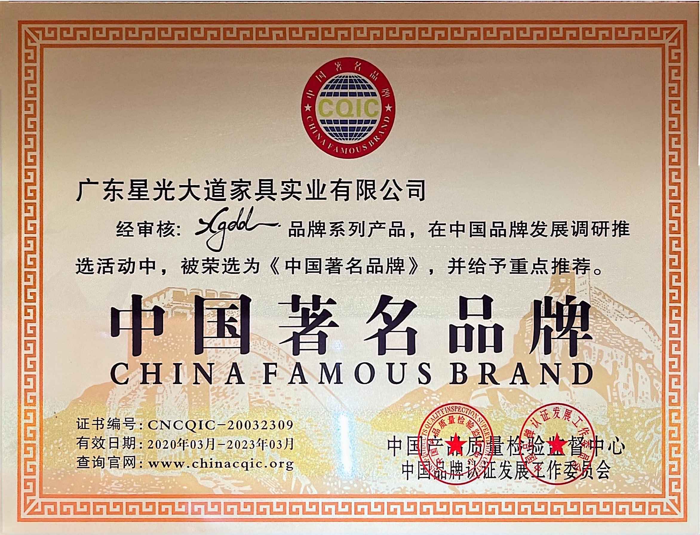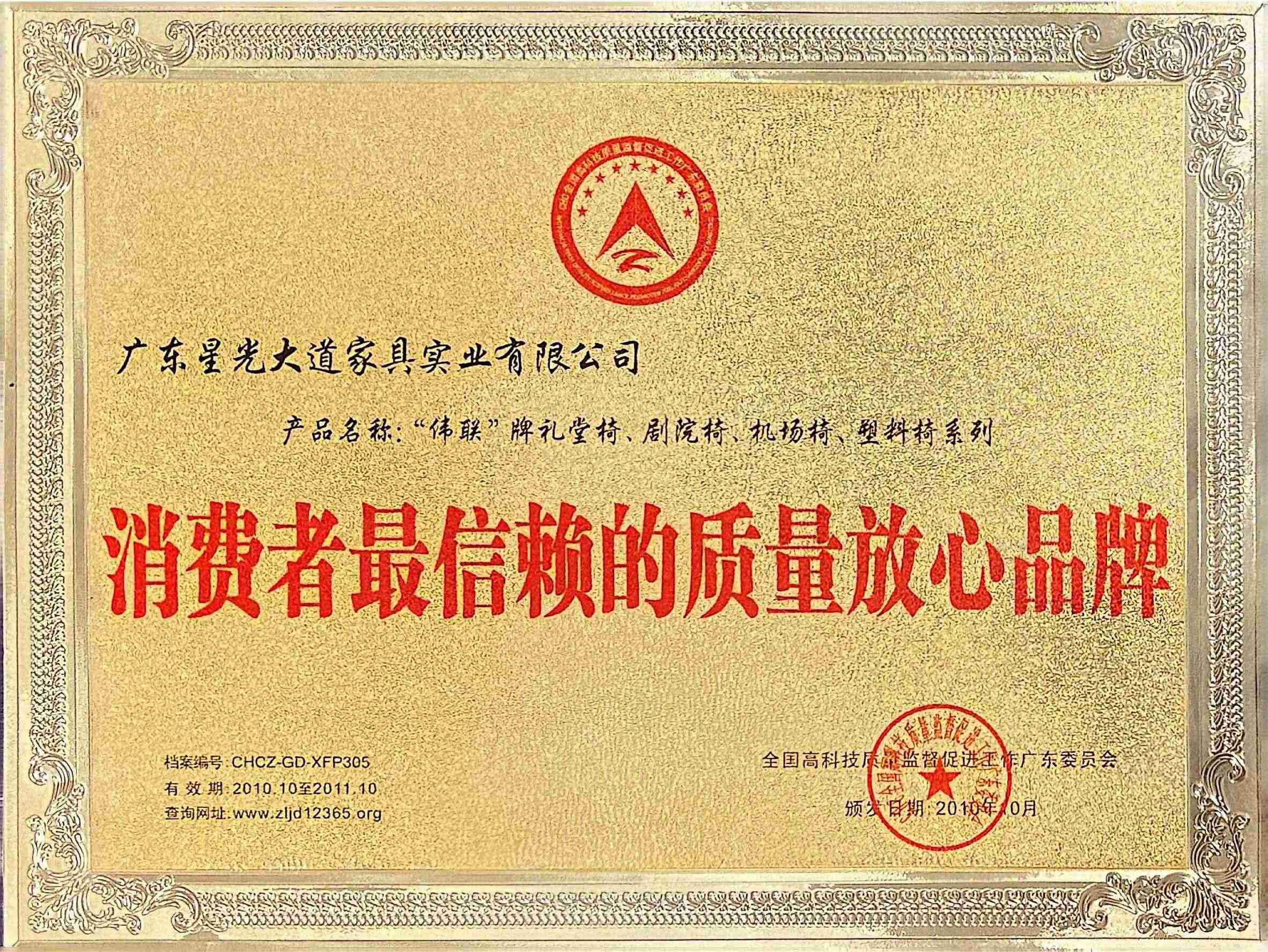 In 2011-2012, it was awarded the titles of "China's Famous Furniture Brand", "Guangdong Province's Famous and Quality Product", and "The Most Trusted Quality Assurance Brand by Consumers".