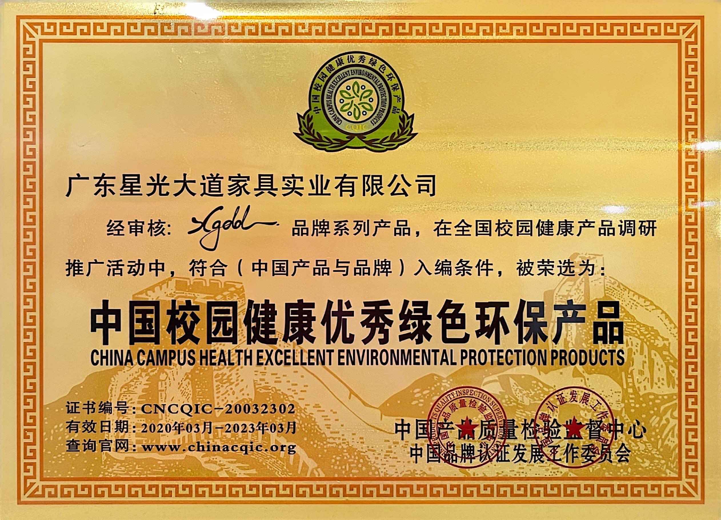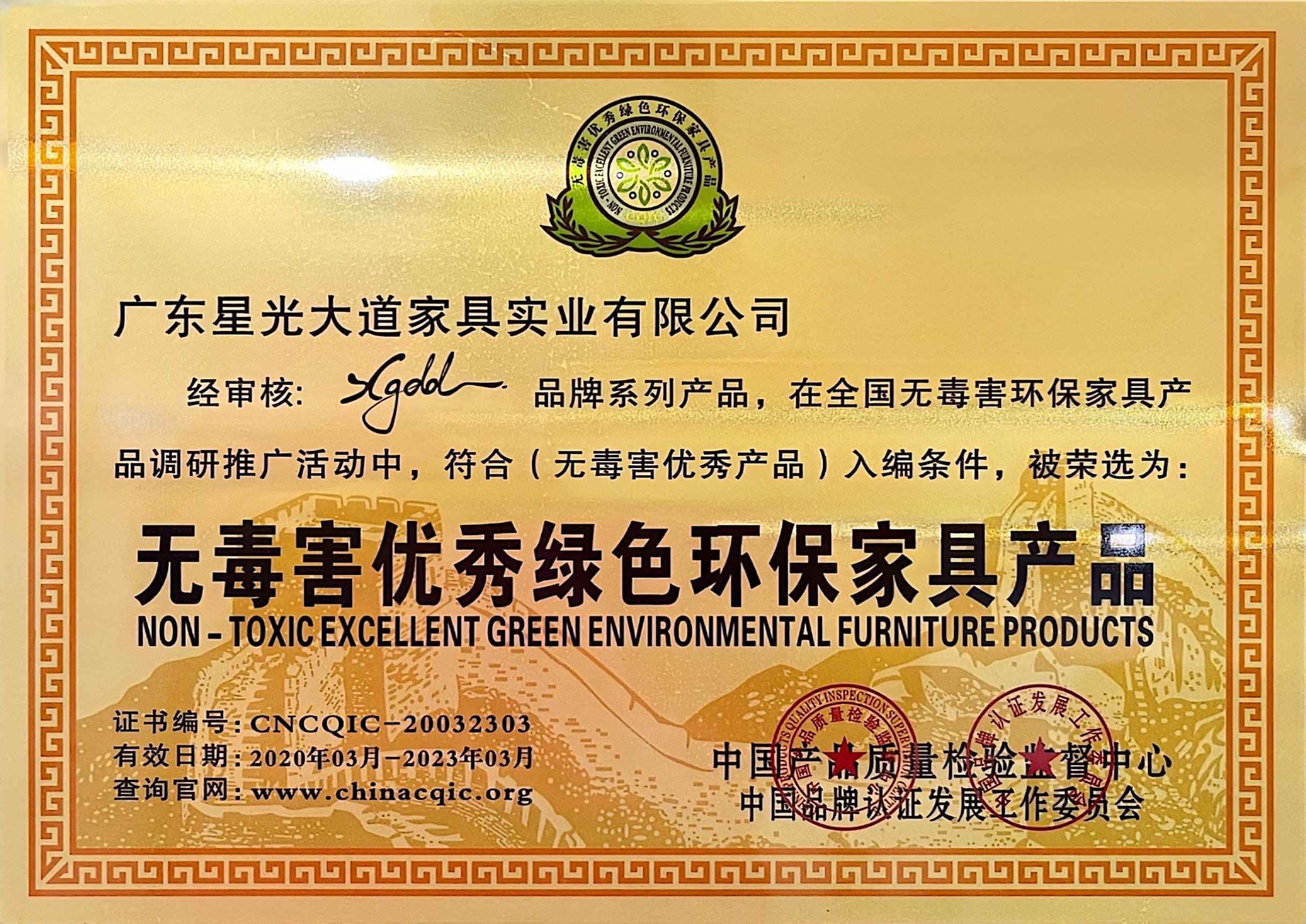From 2020 to 2023, it was awarded the titles of "Green Environmental Protection Product", "Quality Trustworthy Product", "China's Famous Brand", "China's Green Environmental Protection Product", and "Non-toxic and Excellent Green Environmental Protection Furniture Product" "National Quality Inspection Standard Qualified Product", "Outstanding Green Environmental Protection Product for Campus Health in China", "National Authoritative Quality Inspection Qualified Product", "Advanced Enterprise in China's Furniture Industry"