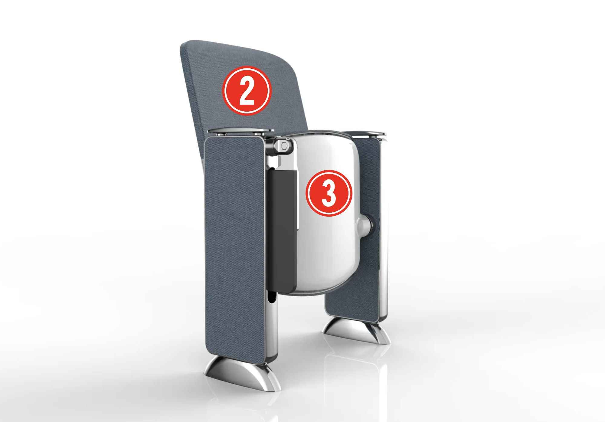 ② & ③ Seat and backrest foam: High-density PU, formed through cold foaming and molding.