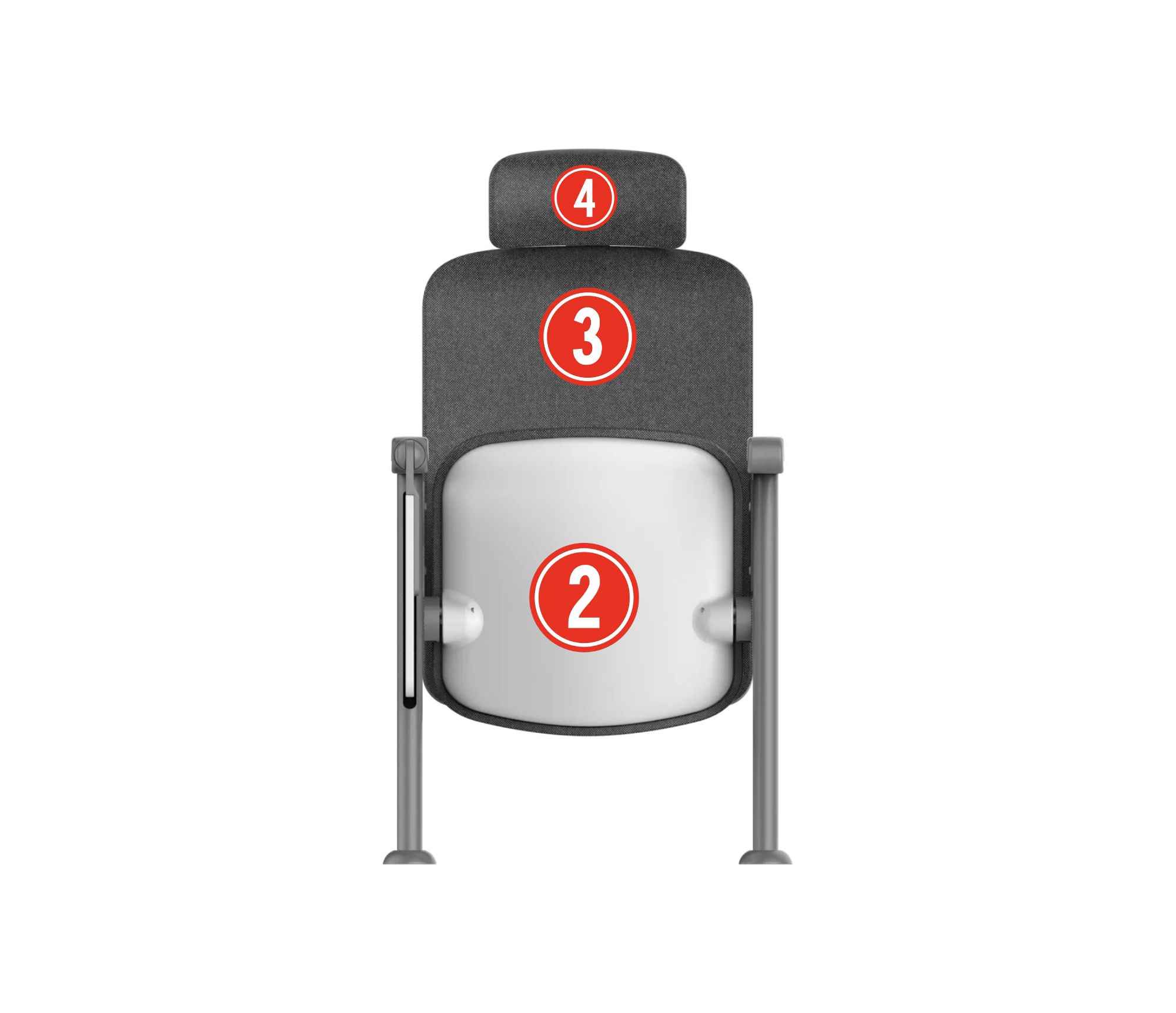 ② & ③ Seat and backrest sponge: High-density PU, formed through cold foaming and molding.