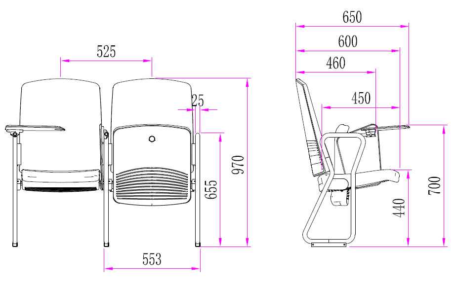 Elegant and practical, the high-density sponge seat and backrest provide comfortable support for long periods of sitting. The armrests are equipped with foldable writing boards, which are convenient for taking notes during meetings. The seat color can be freely combined to create a personalized and exclusive auditorium space.