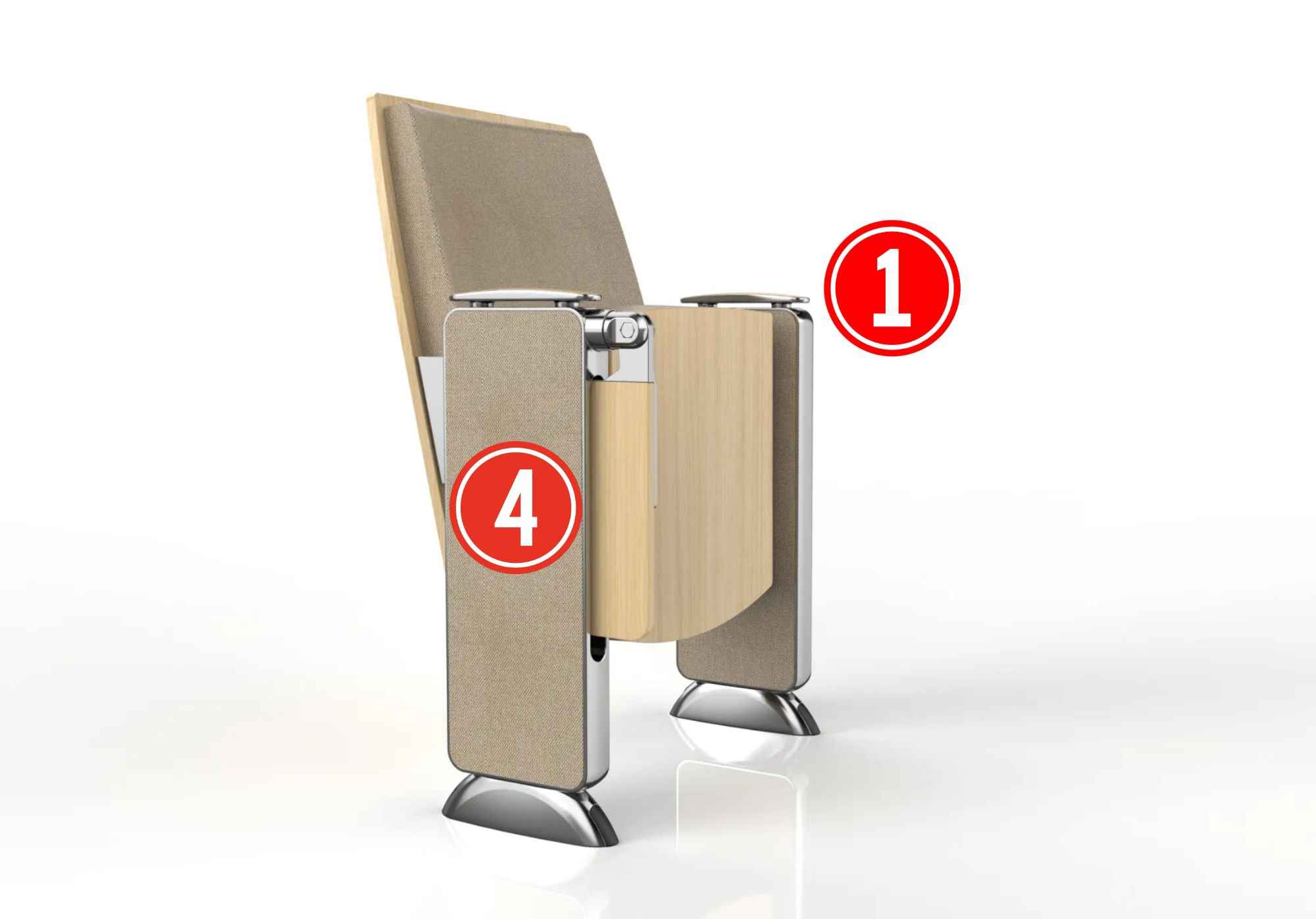 ① Armrest cover: Made of solid wood and coated with eco-friendly polyurethane paint through mold numerical control forming.