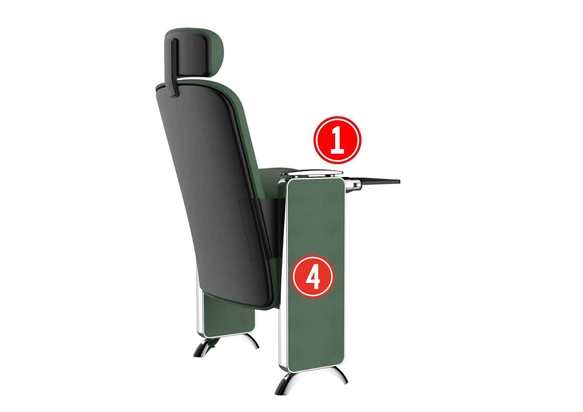 ① Armrest cover: Made of solid wood and coated with eco-friendly polyurethane paint through mold numerical control forming.