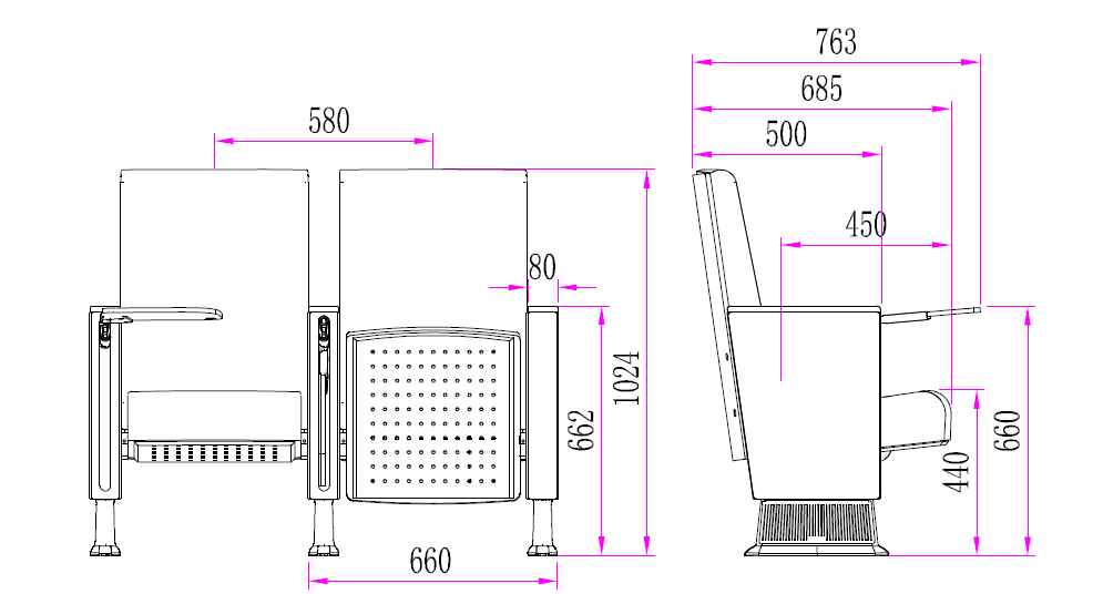 Flexible and practical, the high-density sponge seat and backrest provide long-lasting support for sitting without fatigue; the flip-down writing board on the armrest allows you to jot down key points at any time during meetings; the entire series of fabrics can be freely combined to instantly create a unique auditorium style.