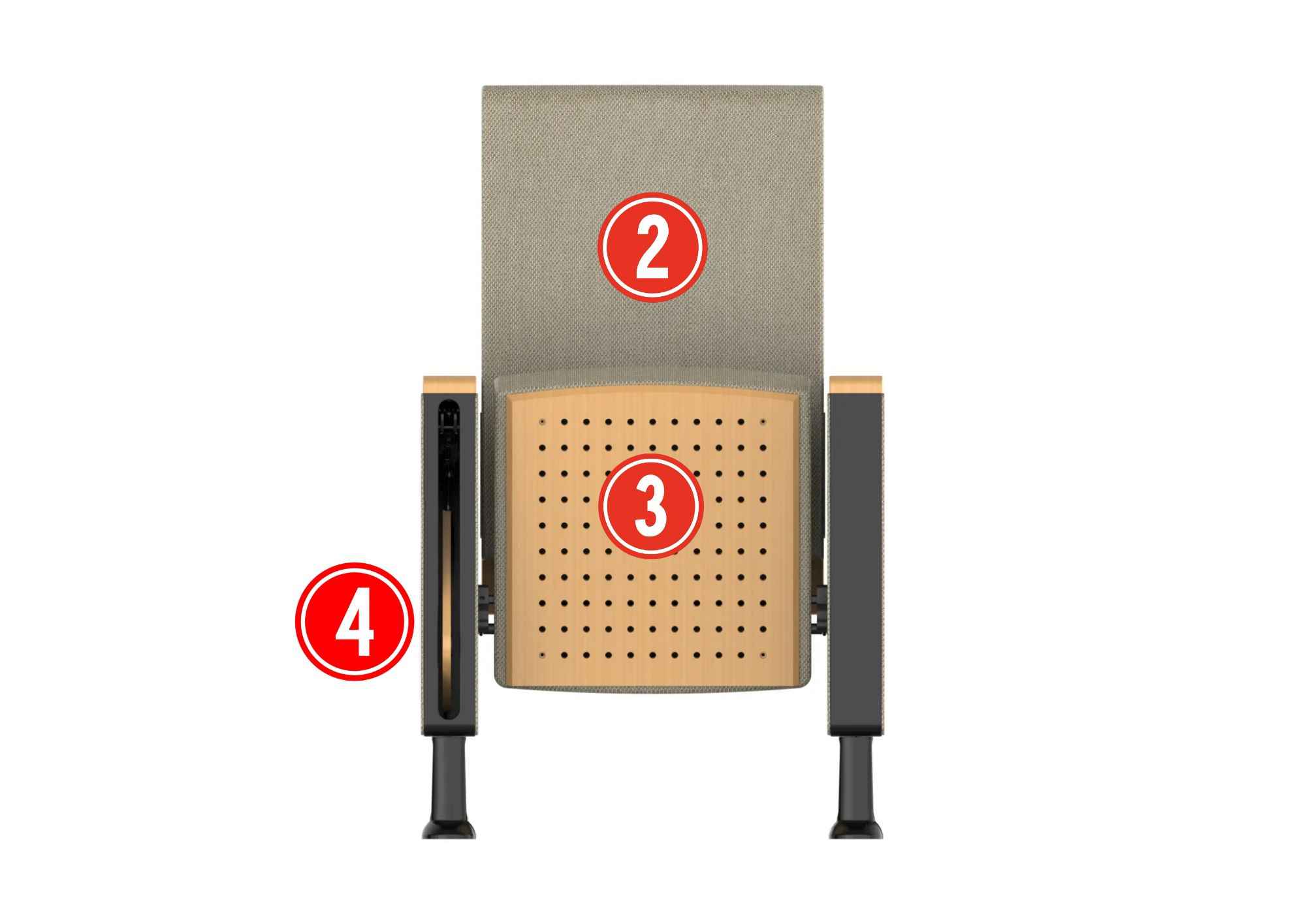 2. The overall design is based on ergonomics, making it a high-end soft sofa-style auditorium seat. The backrest is of medium height, with continuous raised back and lumbar support shapes made of sponge, effectively alleviating fatigue caused by maintaining a sitting position for a long time.
