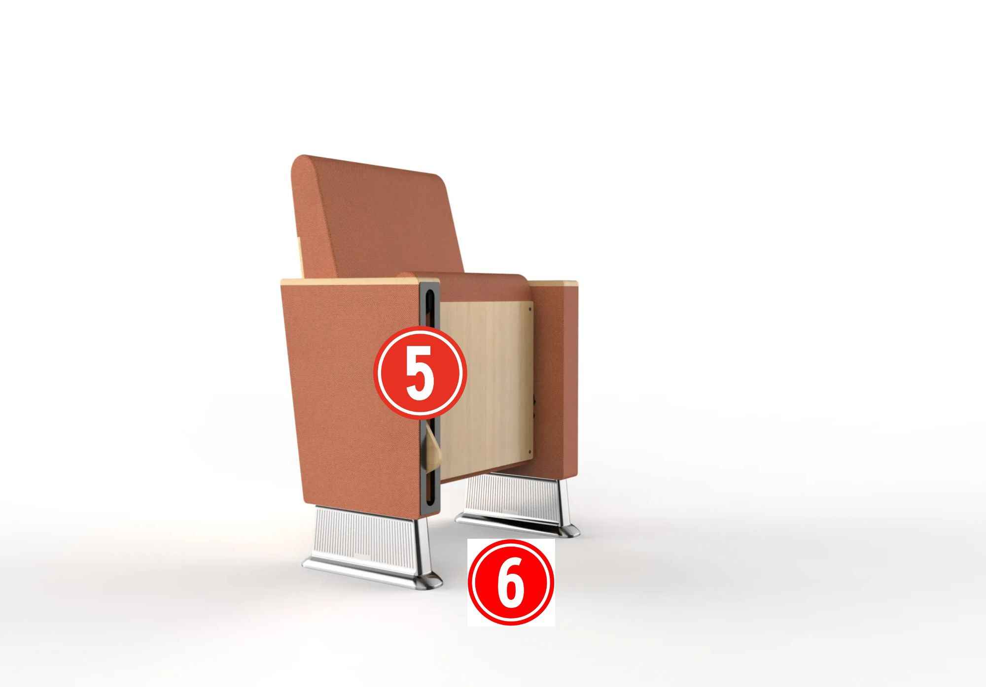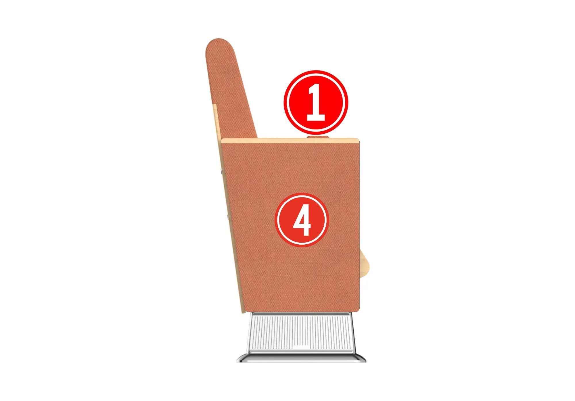 ② & ③ Seat and backrest foam: High-density PU, molded through cold foaming.
