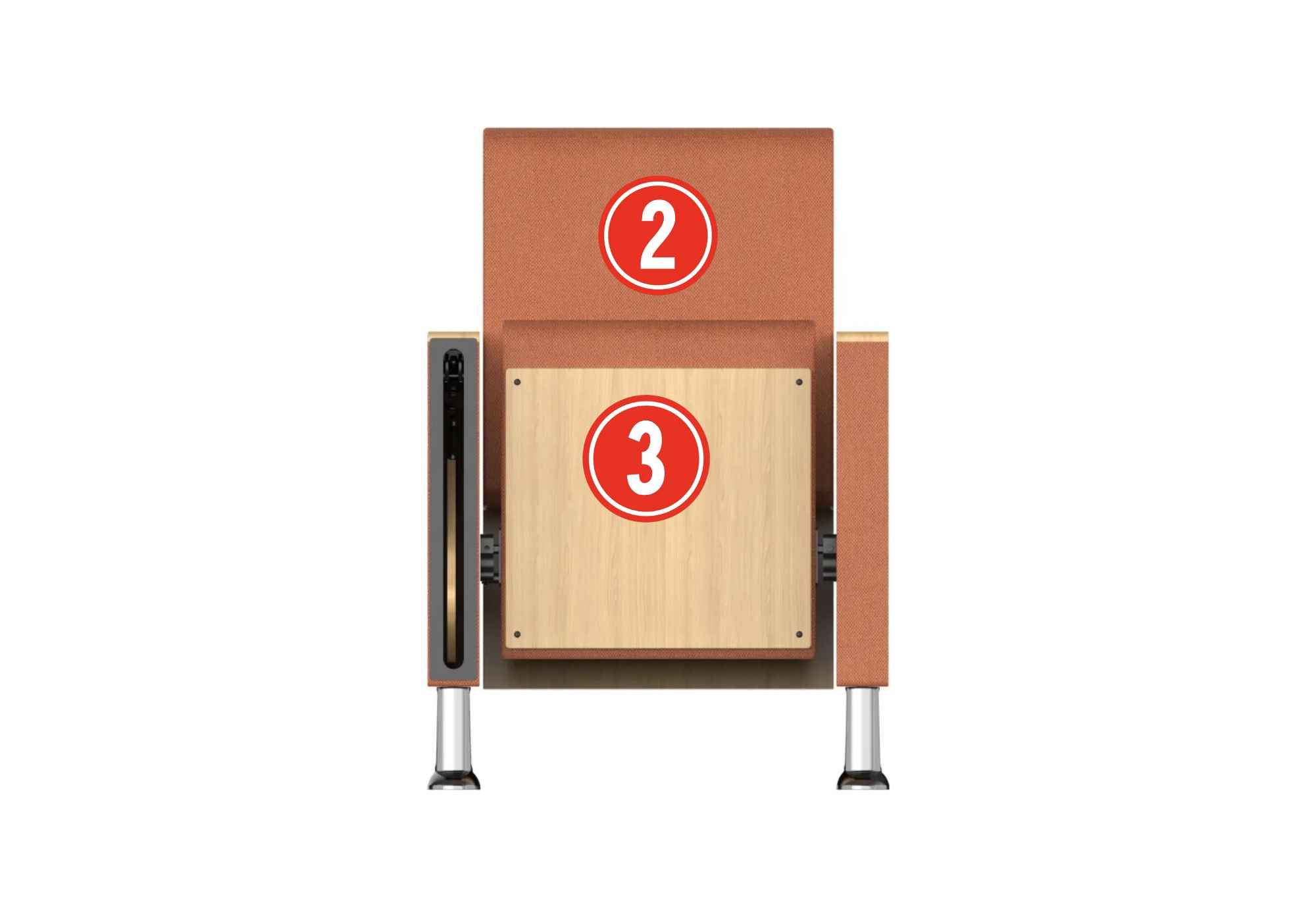 ① Armrest cover: Made of solid wood and coated with eco-friendly polyurethane paint through mold numerical control forming.