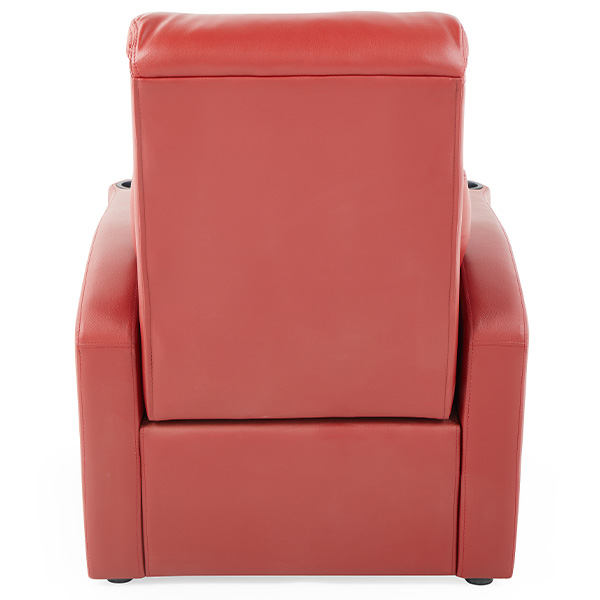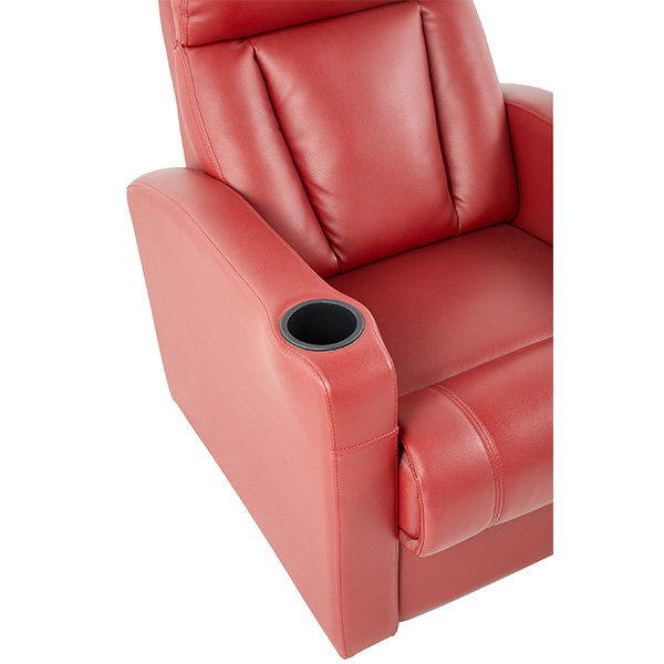①Handrail:Made from carefully selected eco-friendly solid wood through a shaping process. The cup holder can be equipped with a slot for placing a mobile phone and a middle tube for popcorn. The cup holder is made of ABS New material injection molding, with the option to install luminous number plates.