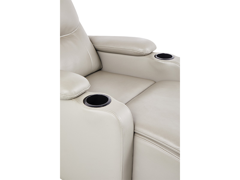 ① Handrail:Made from carefully selected eco-friendly solid wood through a shaping process. The cup holder can be equipped with a slot for a mobile phone and a middle tube for popcorn. The cup holder is injection molded from new ABS material and can be installed with a luminous number plate.