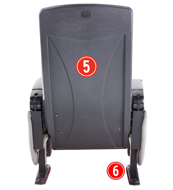 ⑥ Leg: The armrest feet are made of steel plates no less than 2.5mm thick through oil pressure and welding. The bottom plate of the armrest feet is formed by stretching steel plates no less than 2.5mm thick, which fixes the seat to the floor.