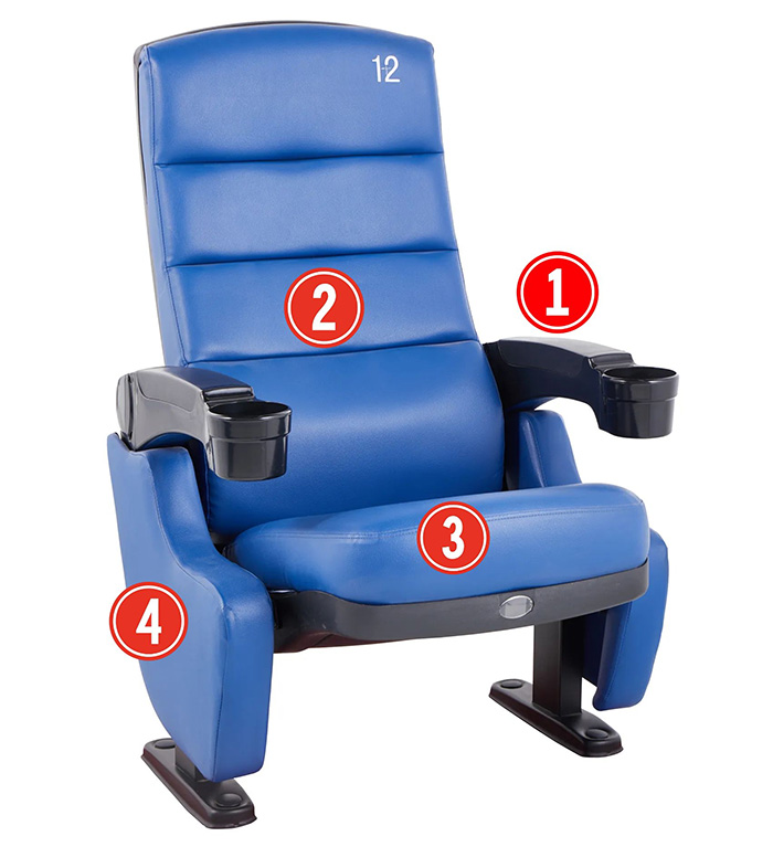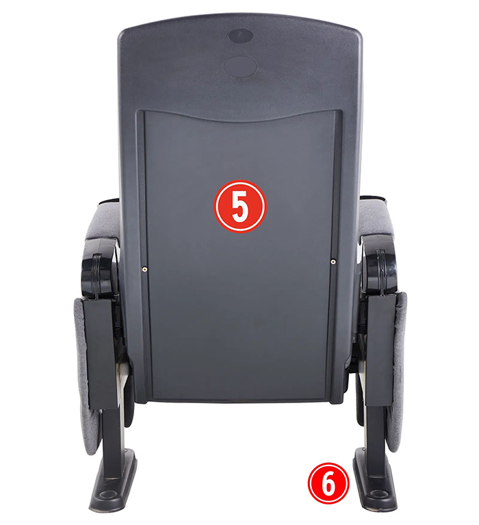 ⑥ Leg: The armrest feet are made of steel plates no less than 2.5mm thick through oil pressure and welding. The armrest feet base plate is made of steel plates no less than 2.5mm thick through stretching, ensuring the seat is firmly fixed to the floor.