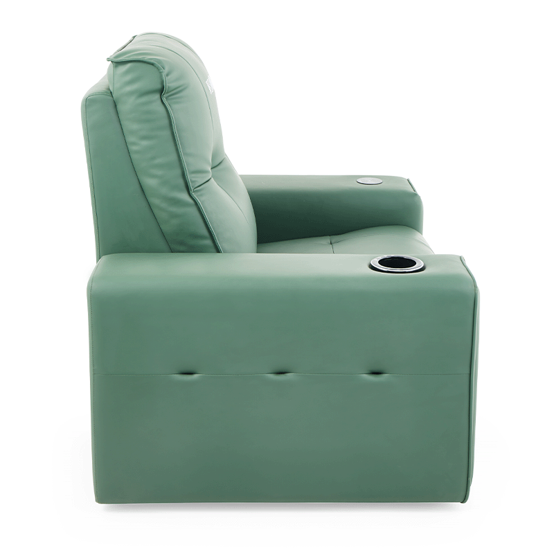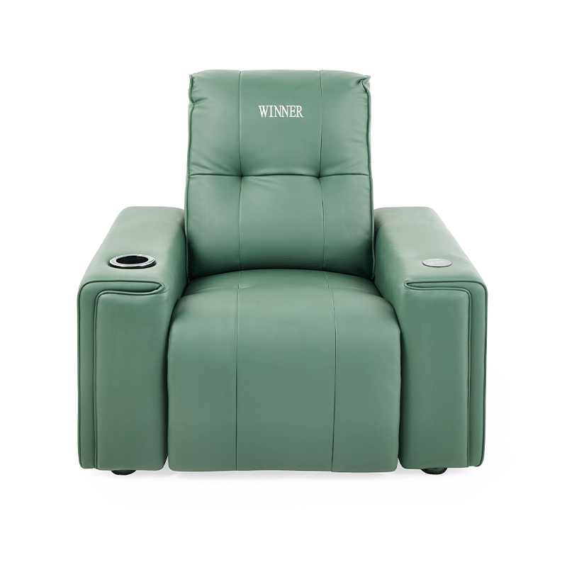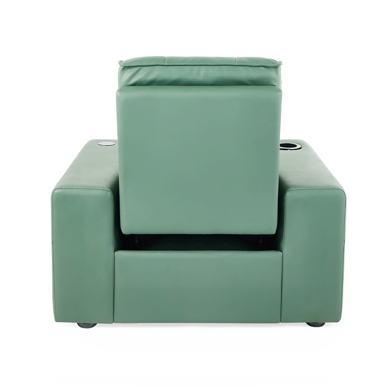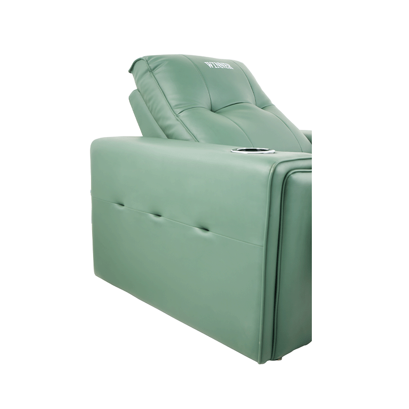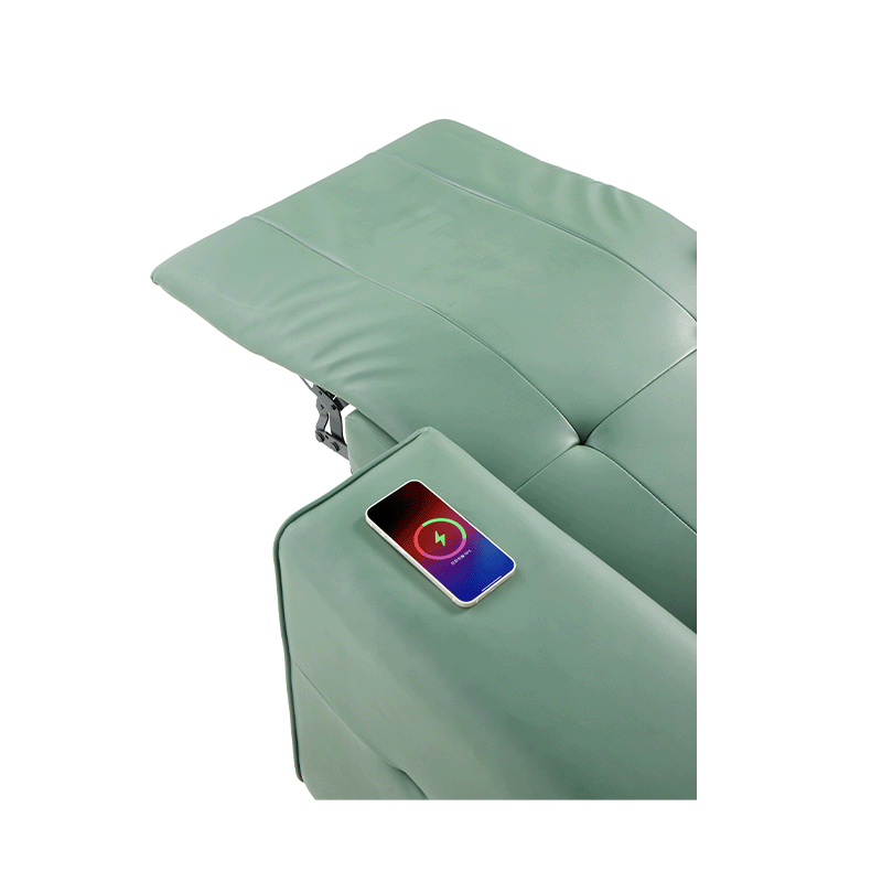 ① Armrest: Made of high-quality selected wood with a high-density sponge evenly distributed and crafted with meticulous care, it offers a soft and comfortable touch to relieve arm pressure. It is equipped with control function keys and can be optionally fitted with a one-touch return switch control key. It also features wireless charging and a refrigerated water cup, a flexible hose LED light, and an optional multi-functional rotating dining board.