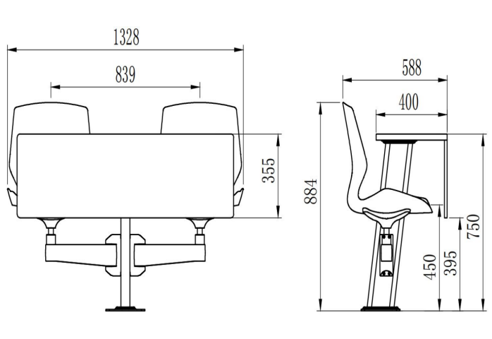 1.The seat operates smoothly and quietly. Optional accessories include a fixed tabletop and a flip-up writing board for storage.