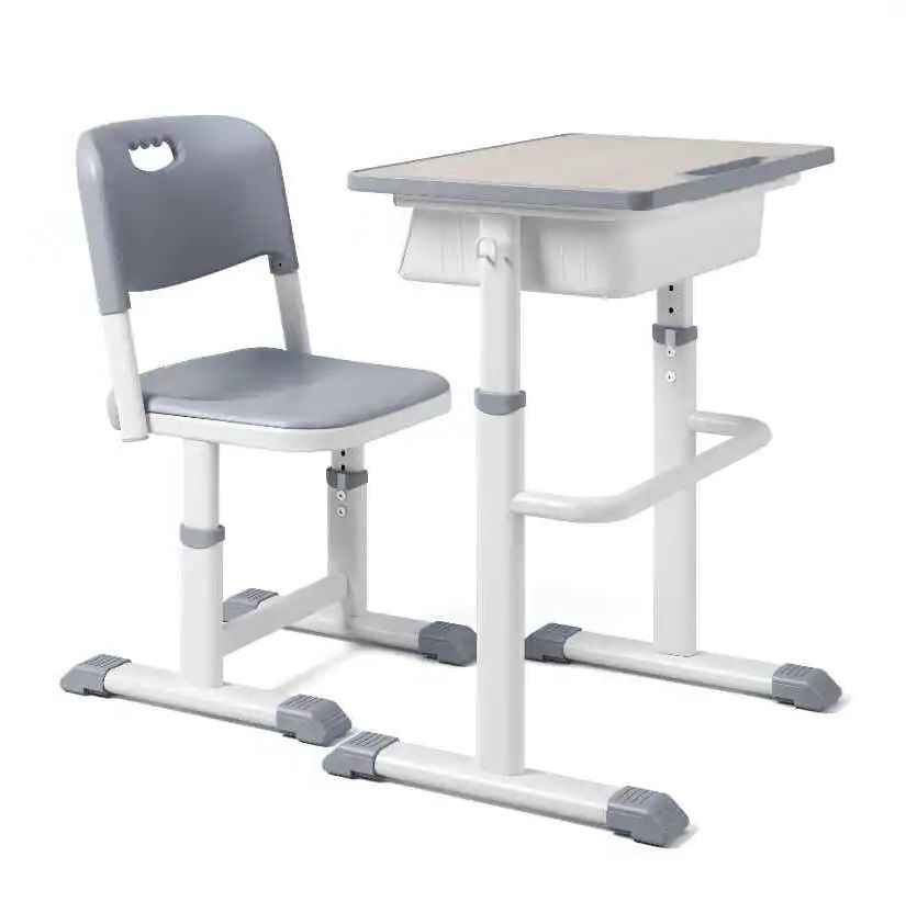 This sturdy and practical student desk and chair set is specifically designed to meet educational needs. The height of the desk and chair can be adjusted according to ergonomic requirements. Constructed from durable steel, it provides a stable and reliable platform for students to take notes, operate laptops, and engage in other learning activities. Its clean and stylish design allows it to blend naturally into various classroom and meeting room environments, optimizing space utilization while fostering a focused and efficient learning atmosphere.