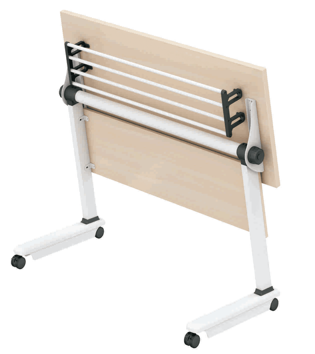 Folding Mechanism : Controlled by switch hook, spring, and plastic parts, 2.5mm steel sheet welded with Ø16 round tube, press plastic handles on both ends to fold, anti-rust electrostatic spray, strong load-bearing and durable.